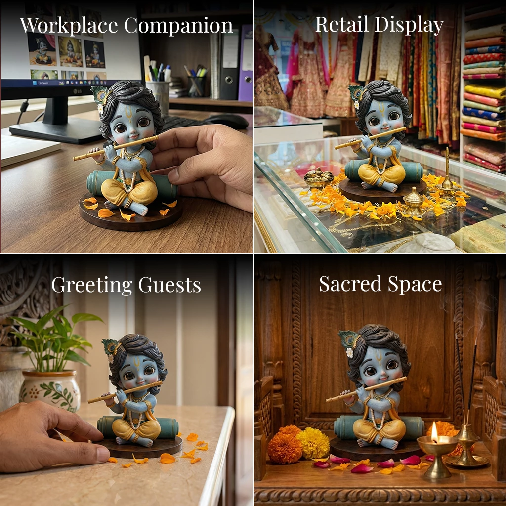 This Krishna idol for home temple is perfect for various spiritual and decorative spaces, including: