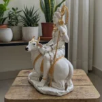 Bring home the supreme divine energy with this exquisitely crafted lord shiva statue for home decor. Depicting Lord Shiva seated peacefully on his trusted vahana, Nandi, this majestic showpiece radiates tranquility and power. Whether you are looking for a striking shiv statue with nandi for your living room or an elegant mahadev showpiece for home, this beautiful white and gold murti is the perfect addition to elevate your interior space. Explore our full collection of divine home decor here.